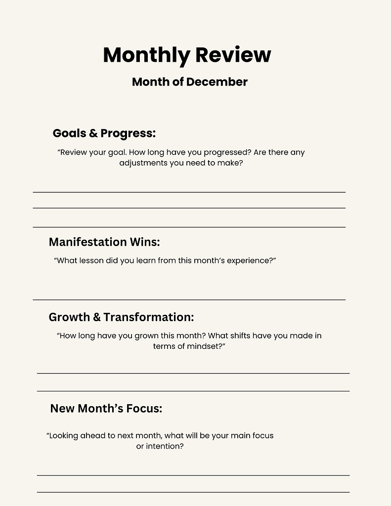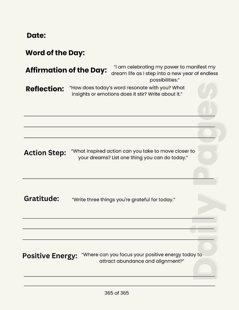 2. This year-long digital journal is your ultimate companion for manifesting your desires. It includes daily affirmations, weekly reflections, and monthly reviews to keep you on track as you create the life you want. Available as a fillable PDF for easy access and use.